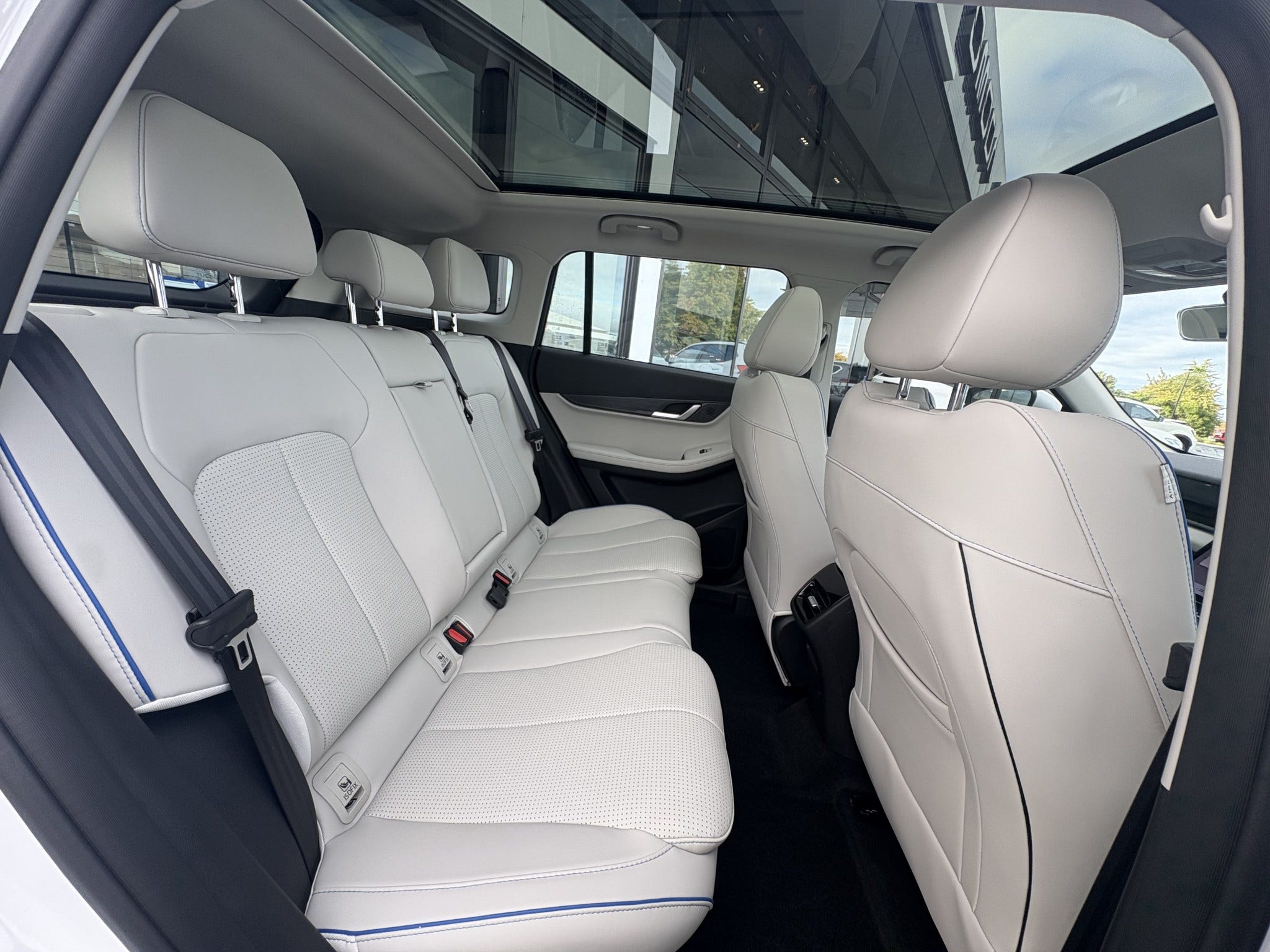 Luxury Features: Panoramic glass roof, ventilated and heated front seats, and 64-color ambient lighting.