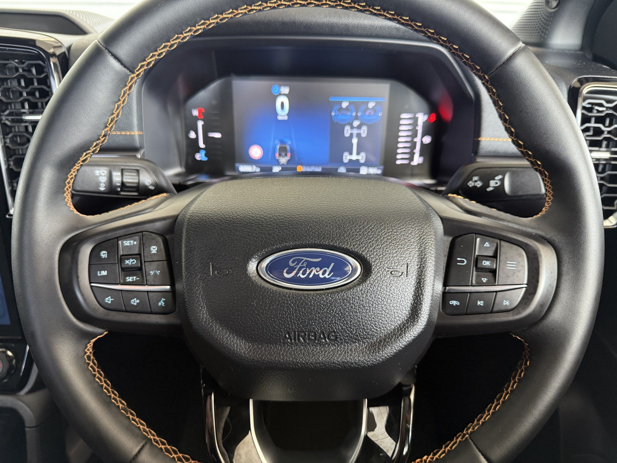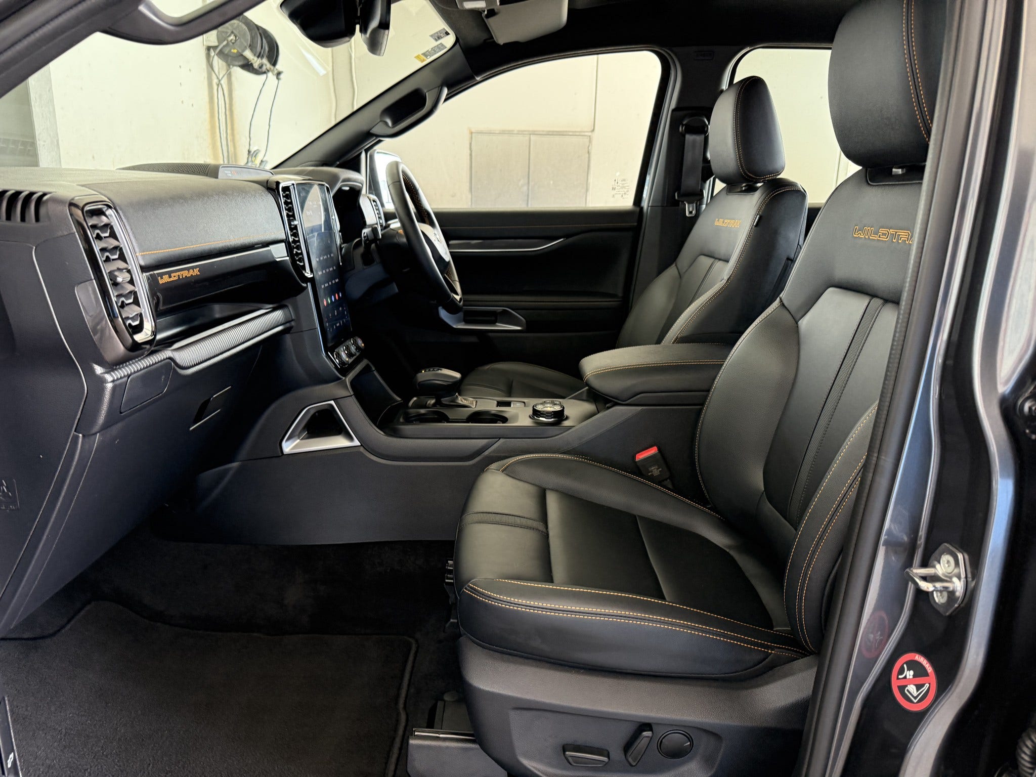 Inside you will find premium ebony cabin with Cyber Orange accents, leather seats (heated, power adjustable), and Wildtrak embroidery. These are complimented by some of the best interior tech offered in the market today including: 12 SYNC4 touchscreen, 8 digital cluster, wireless Apple CarPlay/Android Auto, wireless charging