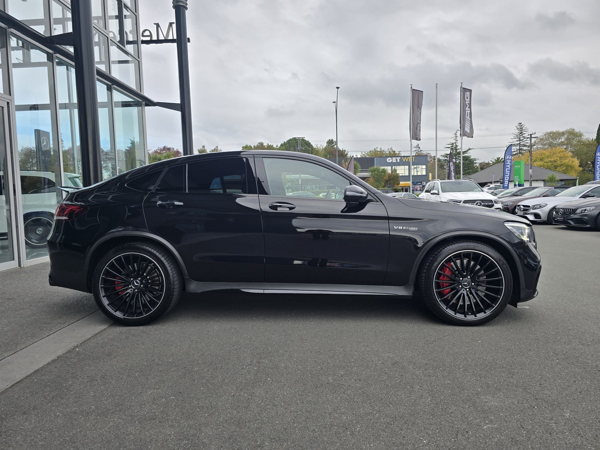 The GLC 63 packs a 4.0-liter V8 biturbo engine outputting 375kw and 700Nm. Paired with Carbon Fibre Interior, radar cruise control, automatic headlights, 360 camera and Head up Display.