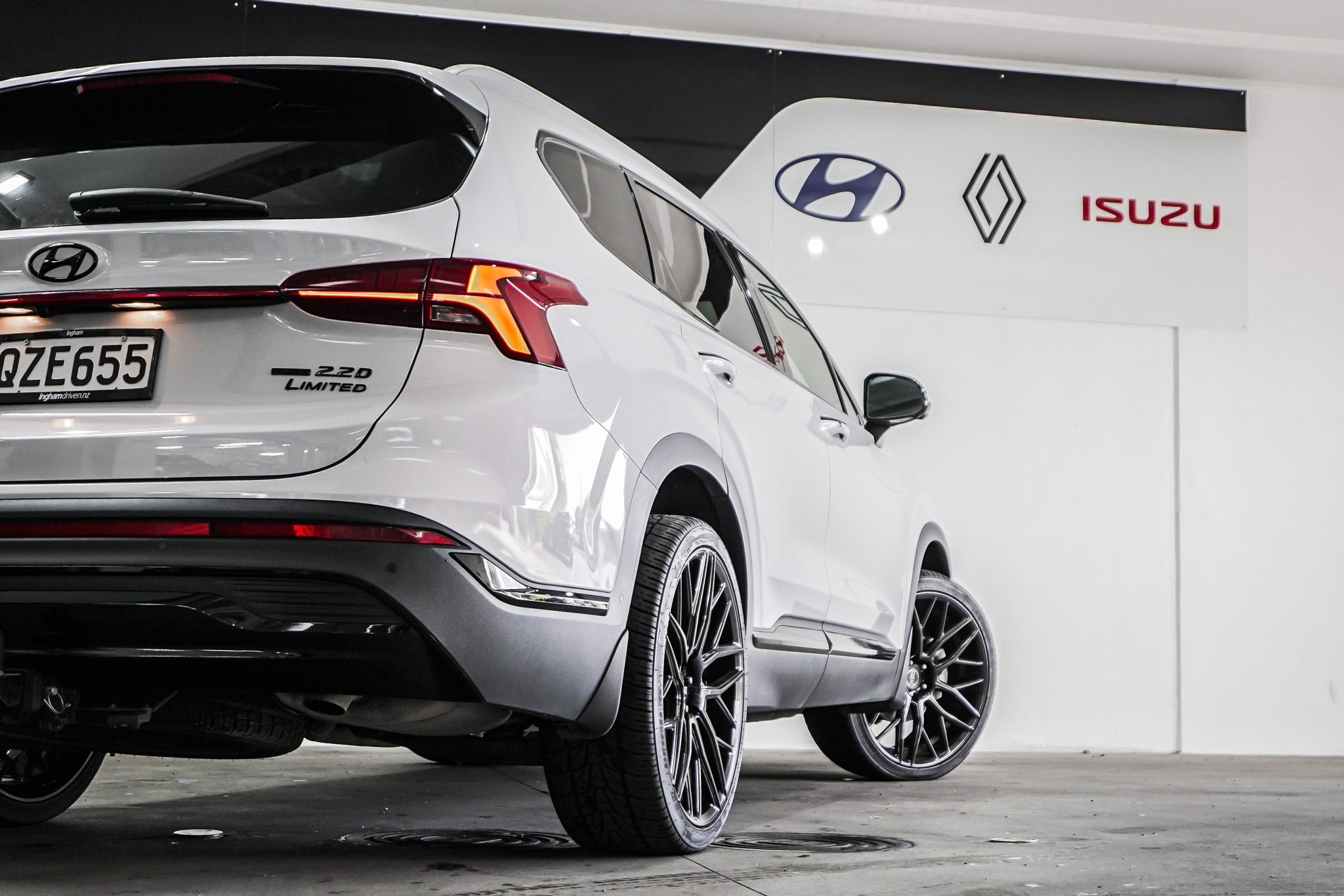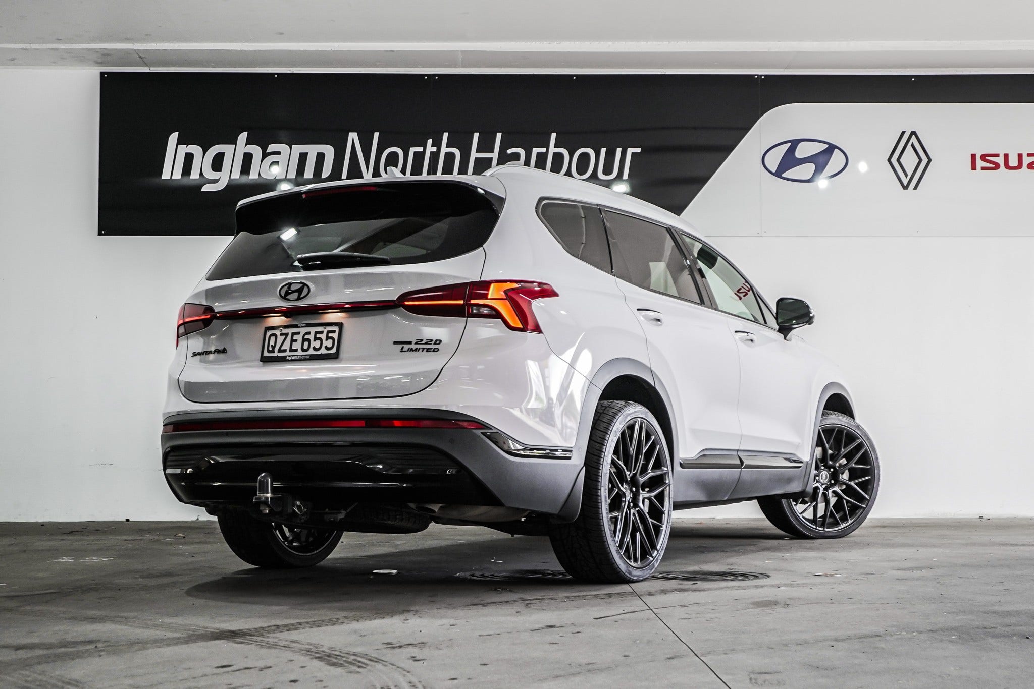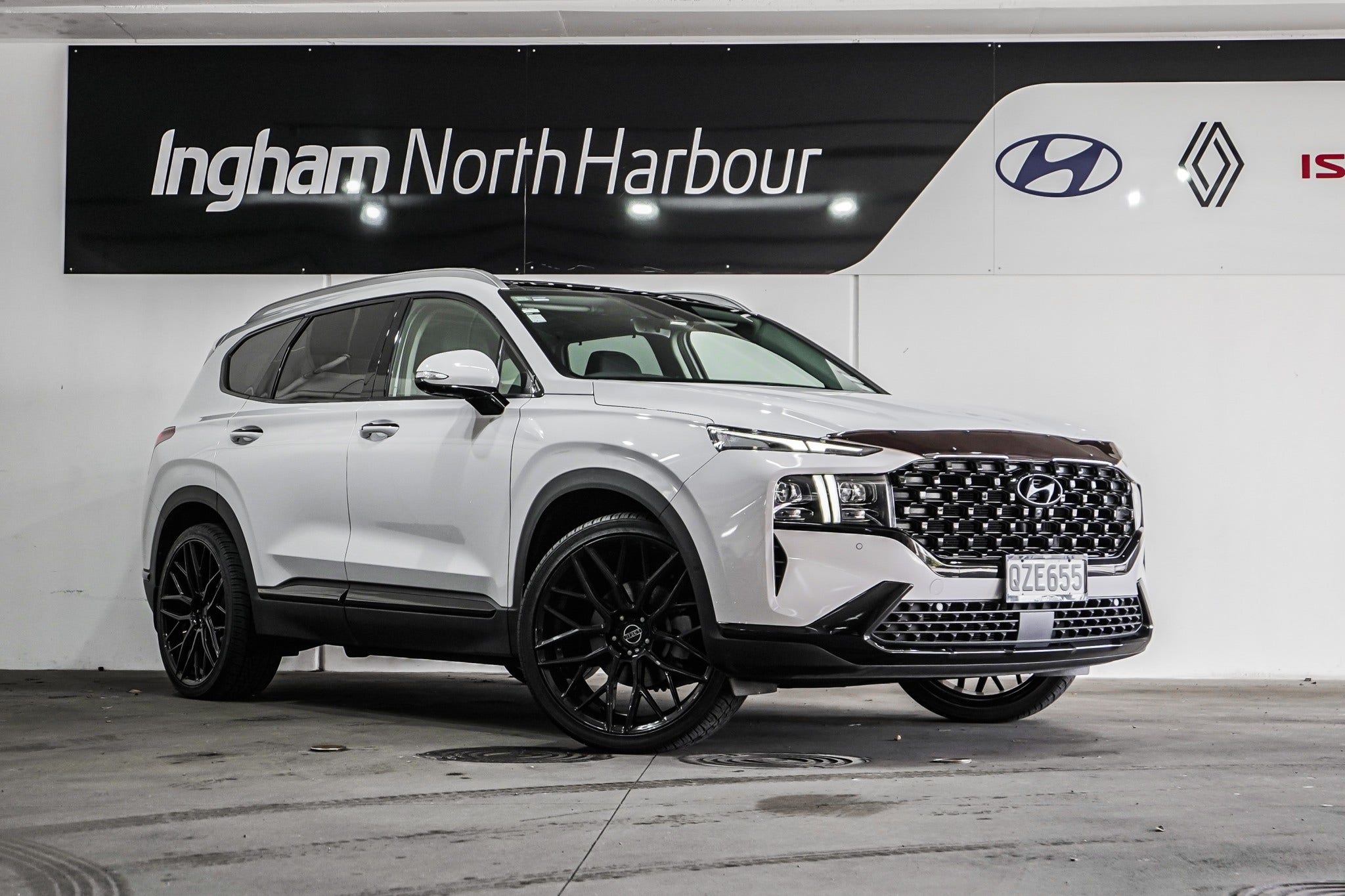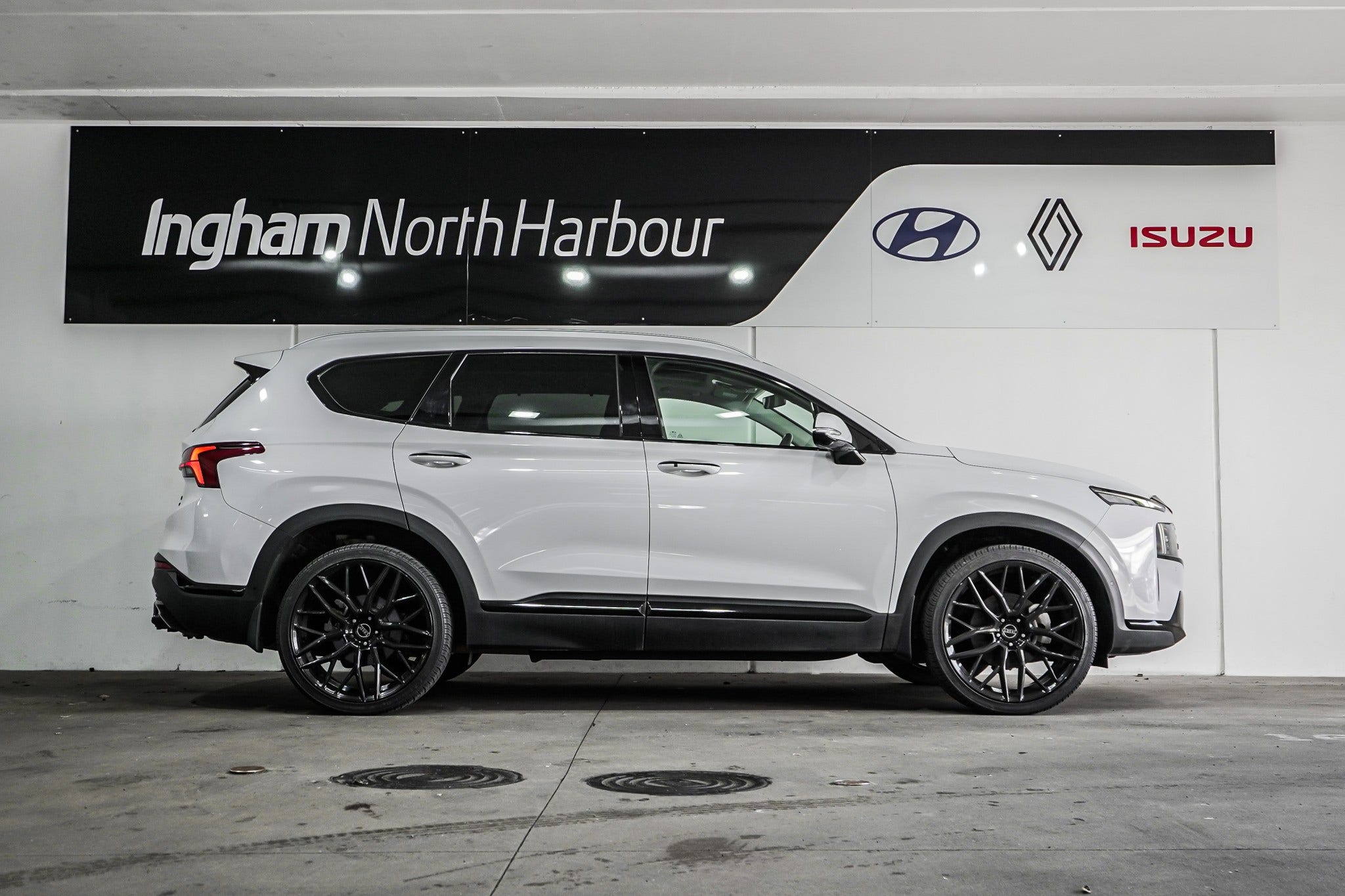 2022 Hyundai Santa Fe 2.2CRDI Limited AWD – NZ New, one owner, with full-service history. Presented in crisp white with a full blackout pack and striking aftermarket alloys, this top-spec Limited combines bold styling with premium comfort and advanced safety technology. Powered by the proven 2.2 turbo-diesel with AWD, it delivers effortless performance, efficiency, and confidence on every journey.