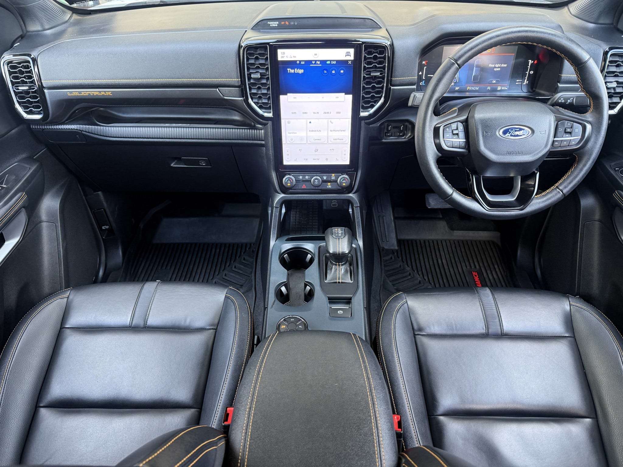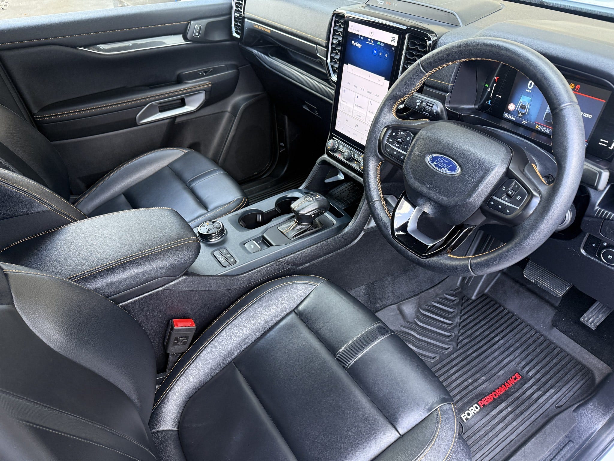 Inside you will find premium ebony cabin with Cyber Orange accents, leather seats (heated, power adjustable), and Wildtrak embroidery. These are complimented by some of the best interior tech offered in the market today including: 12 SYNC4 touchscreen, 8 digital cluster, wireless Apple CarPlay/Android Auto, wireless charging
