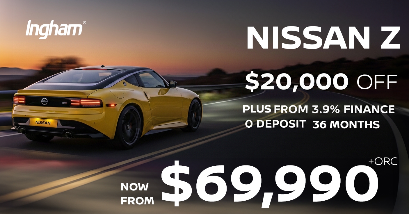 **Finance offer available on new 2025 and 2026 Nissan Z models purchased and registered at Ingham Nissan between 02/04/2025 and 28/02/2026. Approved applicants of Nissan Financial Services New Zealand only. Fixed interest rate of 4.9% p.a. is available on loan terms up to 36 months only (5.9% p.a. applies for 37–48 months, 6.9% p.a. applies for 49–60 month loan terms). 0 deposit required. This offer includes an establishment fee of $375, PPSR fee of $8.05, dealer origination fee of $495, and a $10 monthly account keeping fee. All lease and some fleet purchasers are excluded. Ingham Nissan reserves the right to vary, extend, or withdraw this offer at any time. Not available in conjunction with any other offer. Additional terms and conditions can be viewed at www.nissan.co.nz.