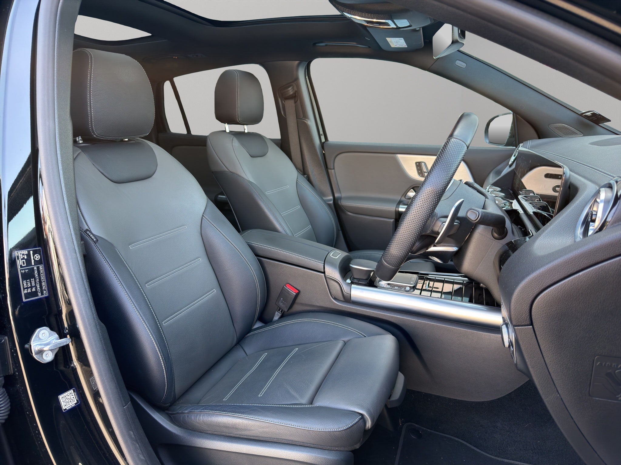 Allow the sun to pour in through the panoramic sunroof, illuminating the plush leather interior that cradles you in unparalleled comfort. Bask in a universe of connectivity and intelligence with the MBUX system, effortlessly paired with Apple Carplay, Android Auto, and Bluetooth, ensuring you remain connected yet blissfully free.