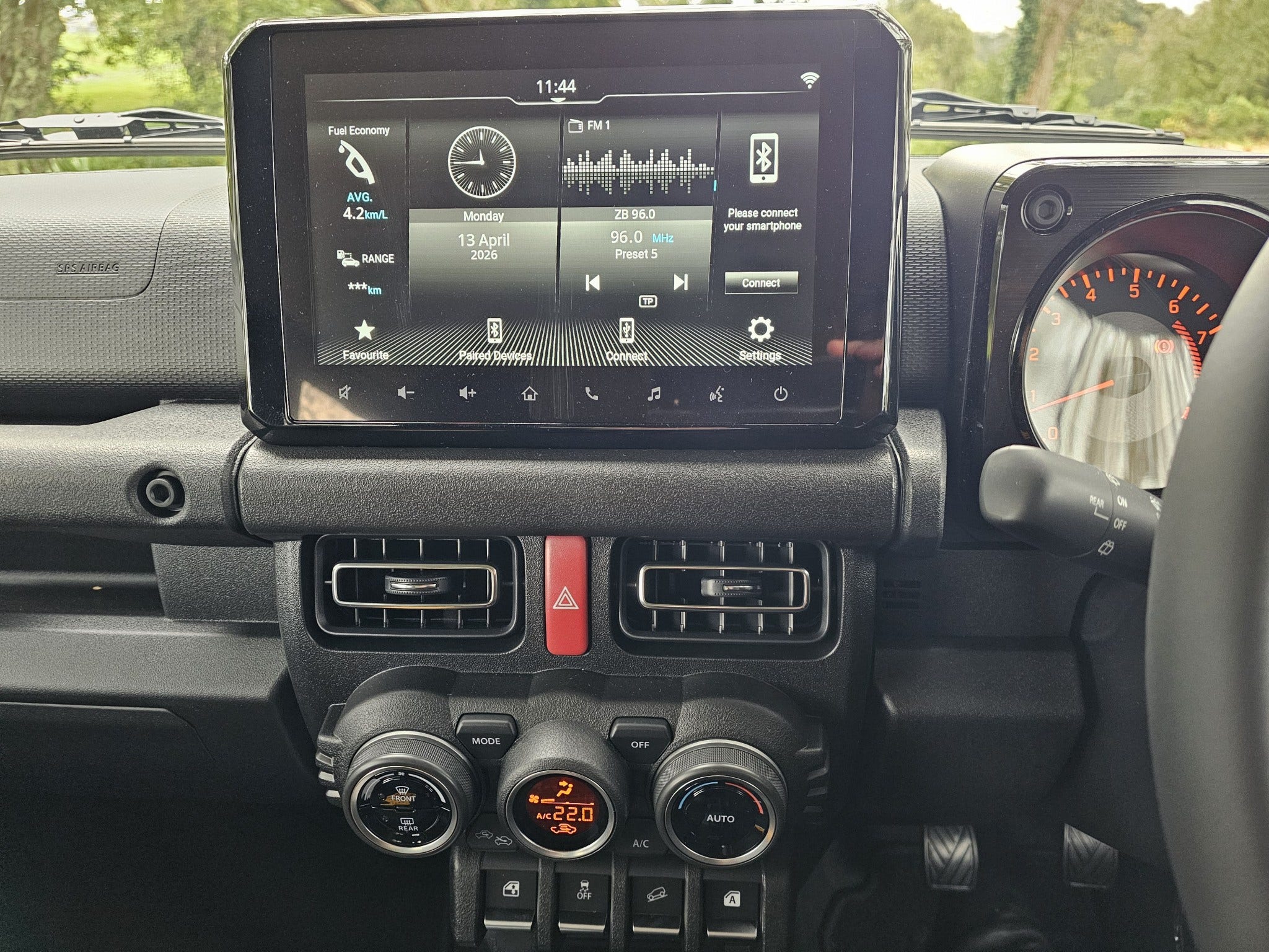 For 2026, the Jimny Sierra gains several upgraded driver-assist and convenience features including a larger infotainment screen, reverse camera, front and rear parking sensors, adaptive cruise control, LAE and speed sign recognition, making everyday driving easier while maintaining its classic rugged character.