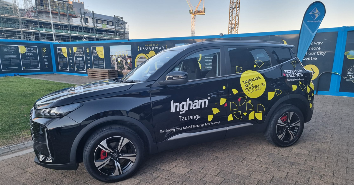 As part of the partnership, Ingham Tauranga has proudly provided the Festival team with a branded Chery Tiggo 4. The vehicle, driven by General Manager of Tauranga Arts Festival Sarah Cotter, embodies the same bold spirit of innovation and modern design that defines the Festival itself. Stylish, practical and dynamic, the Tiggo 4 is a fitting symbol for an event that thrives on fresh thinking and creativity.