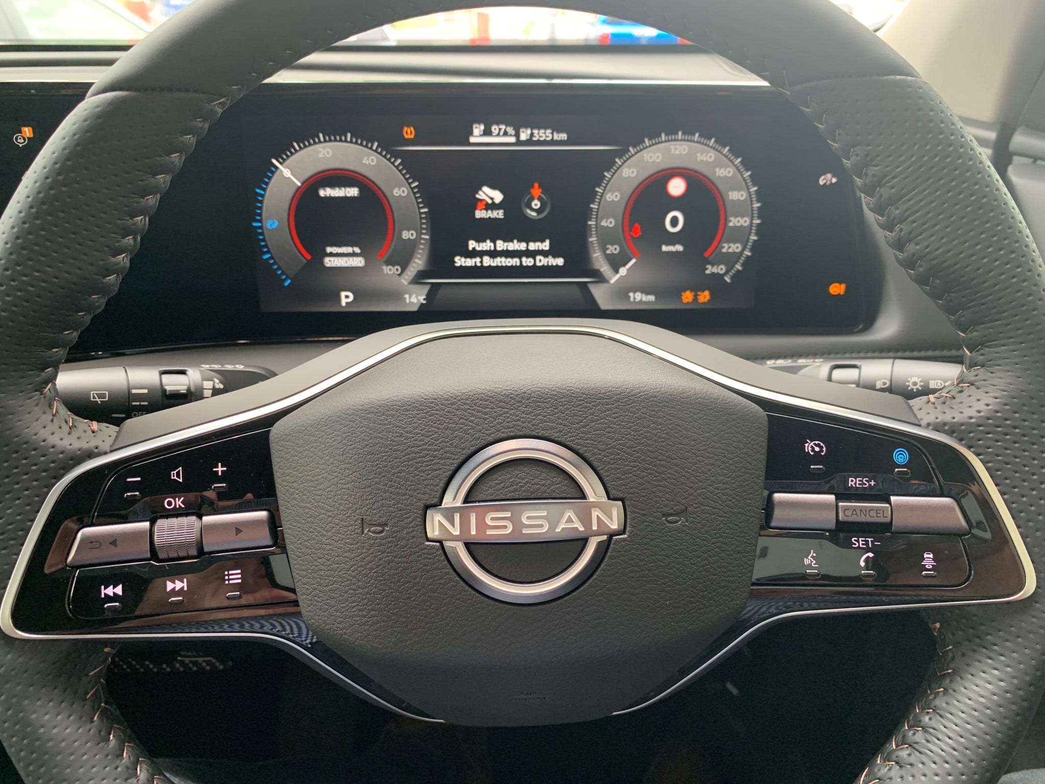 Key equipment for the Engage grade: 19″ alloy wheels, “Three Drive Modes” (Eco/Standard/Sport), and advanced driver assistance features under Nissan Intelligent Mobility.