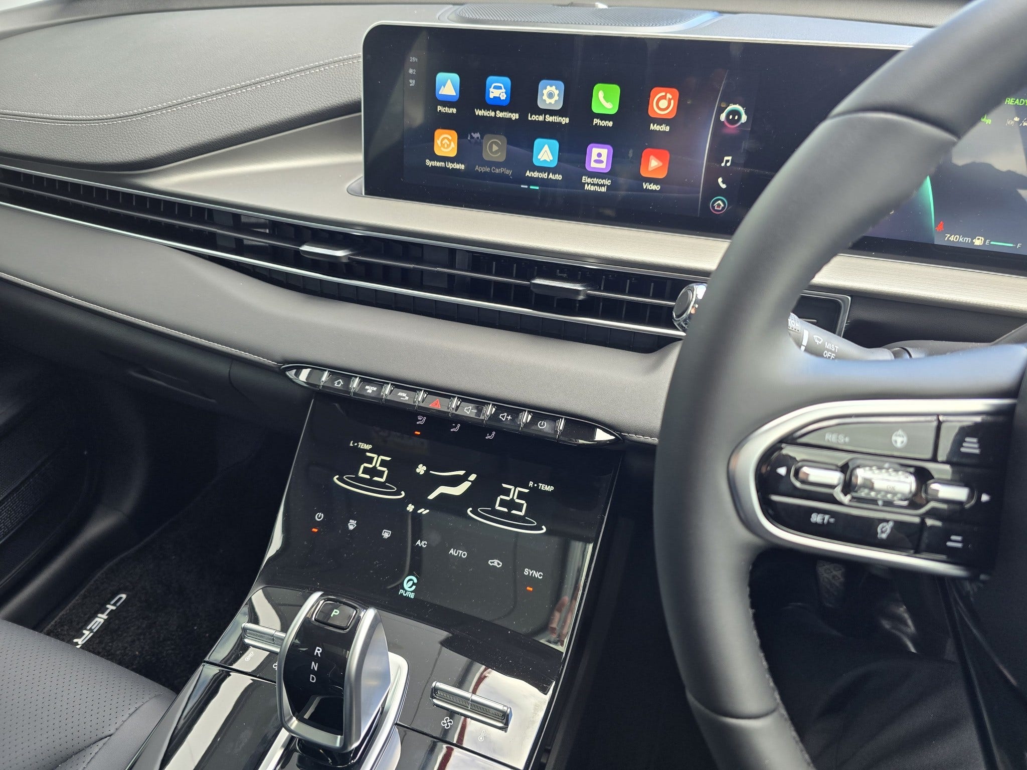 Dual-Screen Cockpit: Stay connected and informed with the striking dual 10.25-inch LCD digital displays, featuring wireless Apple CarPlay/Android Auto and the intuitive 'Hello Chery' voice command system.