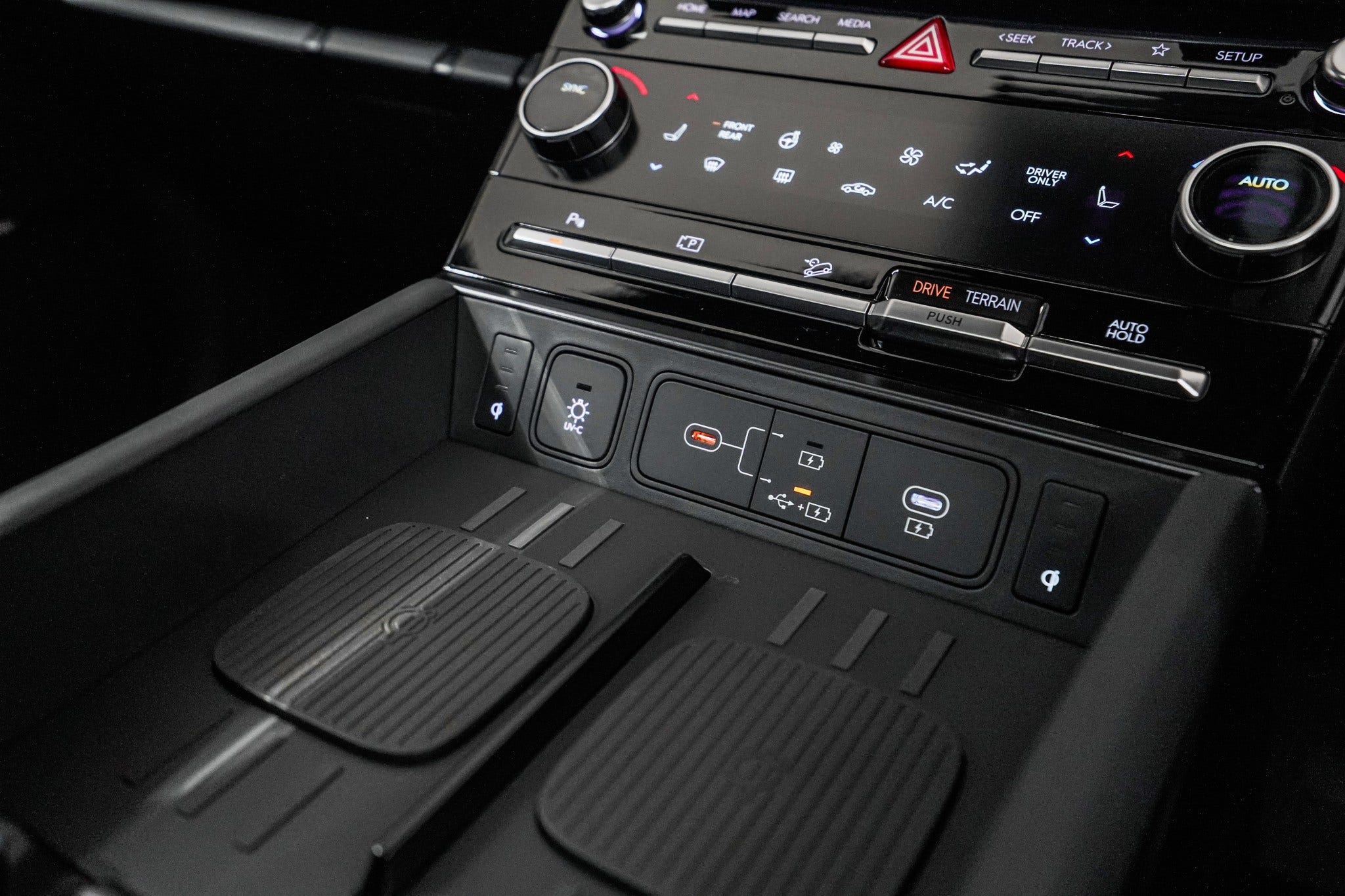 Stay connected and in control with dual wireless phone charging, USB-C ports front and rear, and wireless Apple Car Play and Android Auto.
