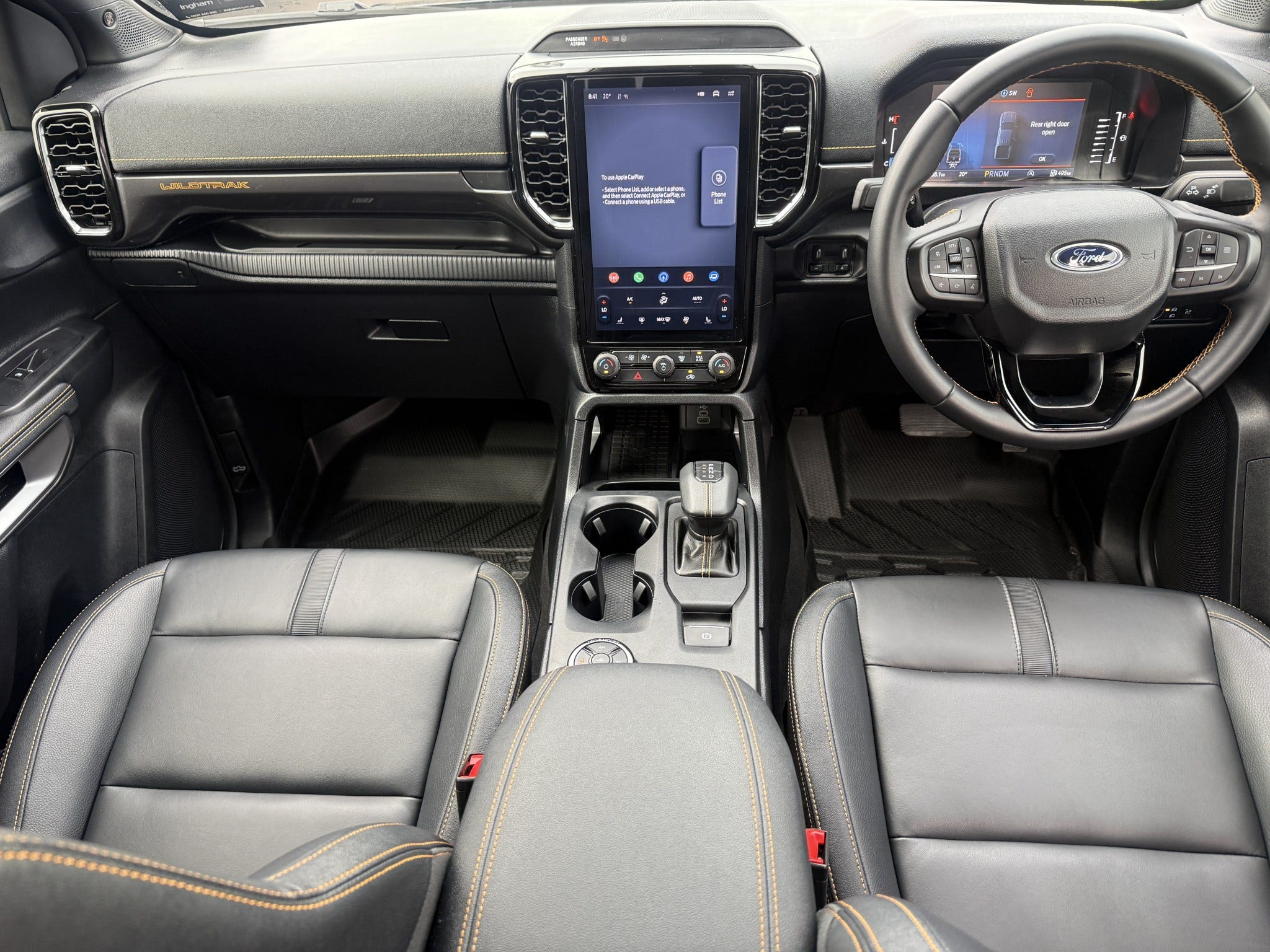 Inside, the Wildtrak offers a premium, tech-packed cabin with leather-accented trim, large touchscreen infotainment, Apple CarPlay & Android Auto, adaptive cruise control, 360° camera, lane assist and a full suite of advanced safety features.