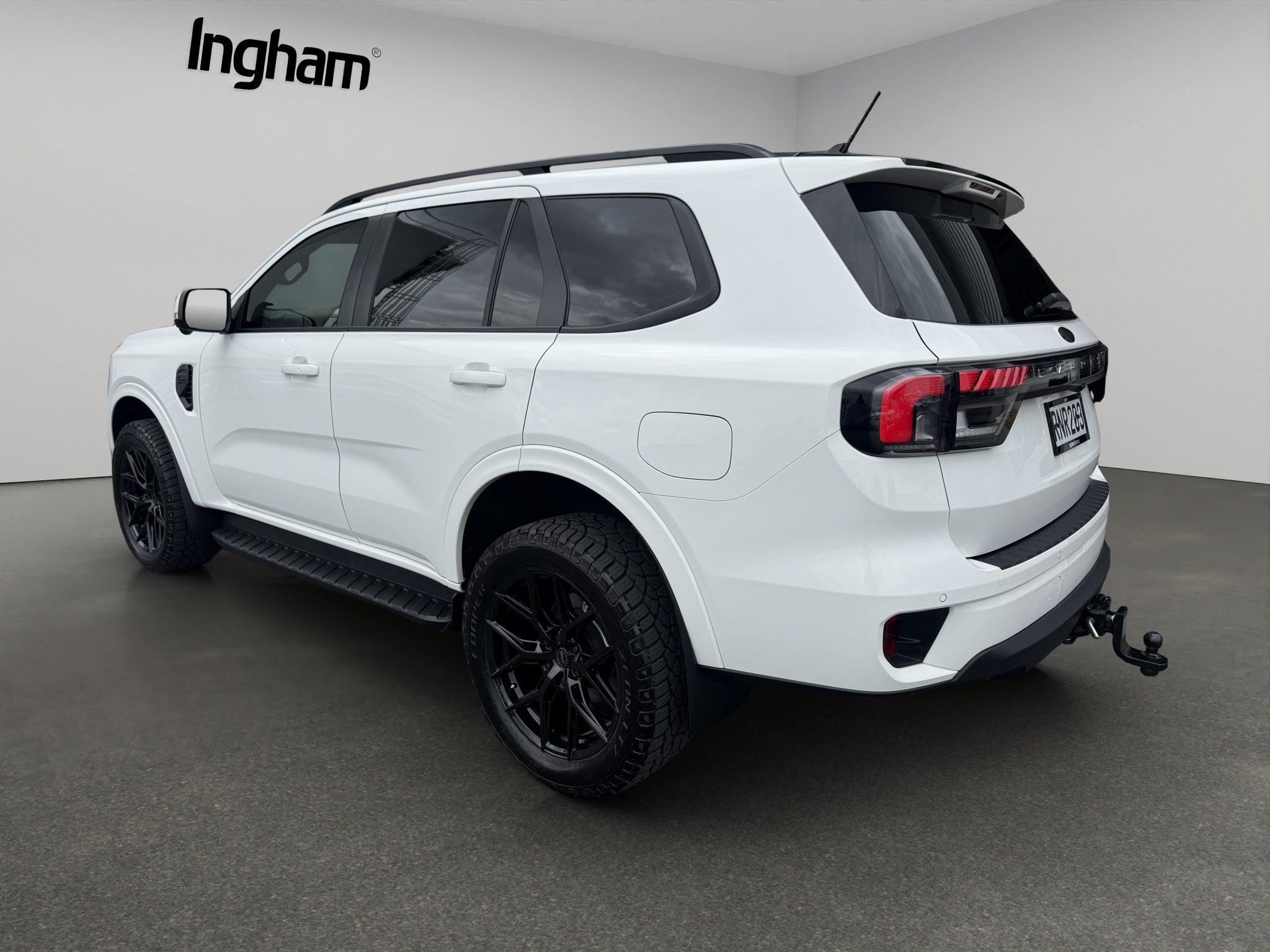 Presenting a 2024 Ford Everest Trend, finished in crisp white with a contrasting black roof, sitting tough on 20” gloss black GT Form wheels wrapped in quality Cooper tyres. With a full blackout package and tinted windows, this Everest looks absolutely menacing on the road.