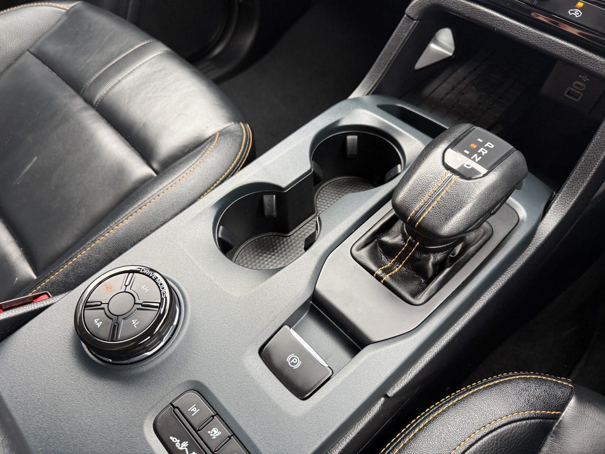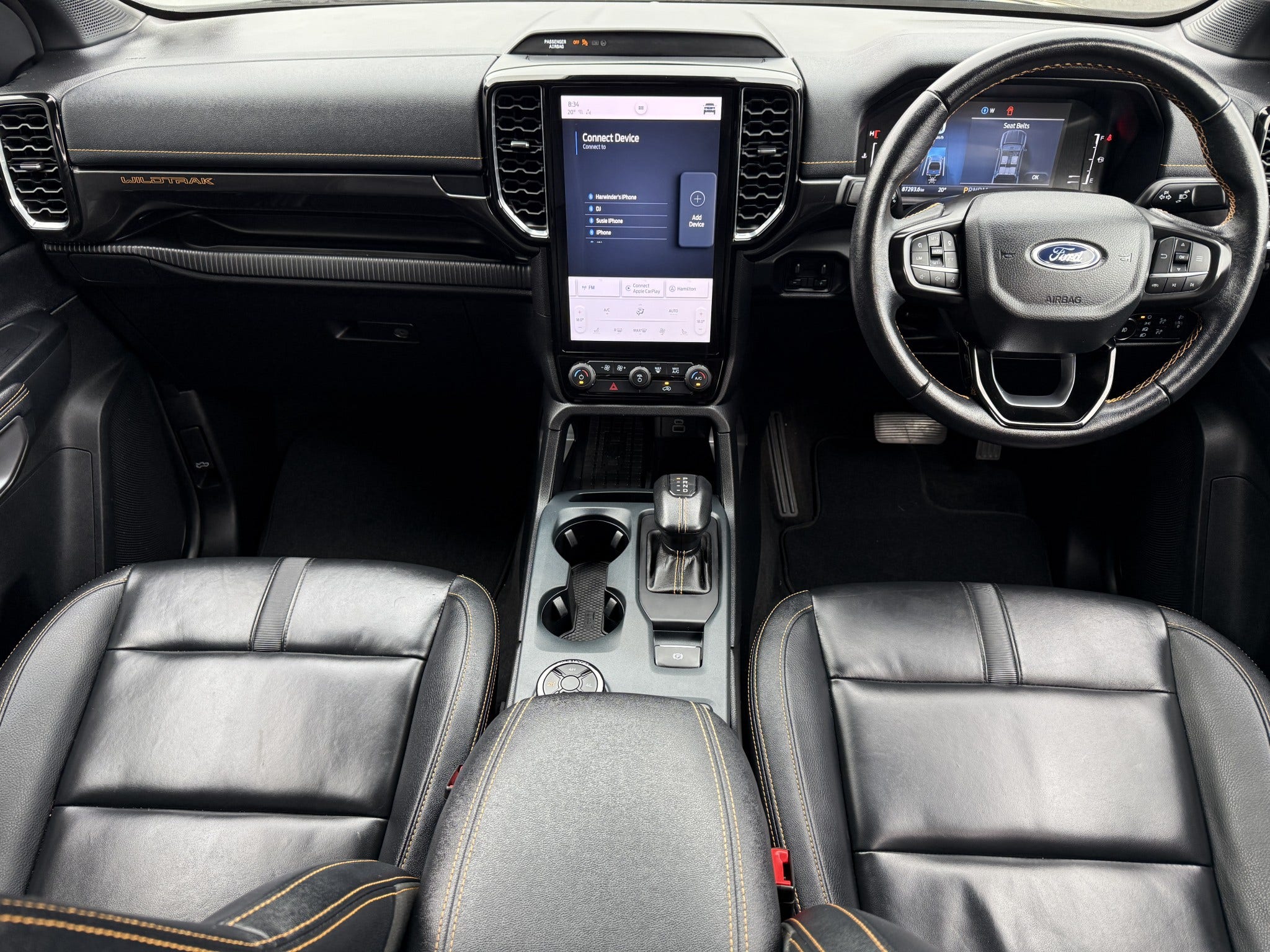 Wildtrak leather-trimmed interior with orange stitching