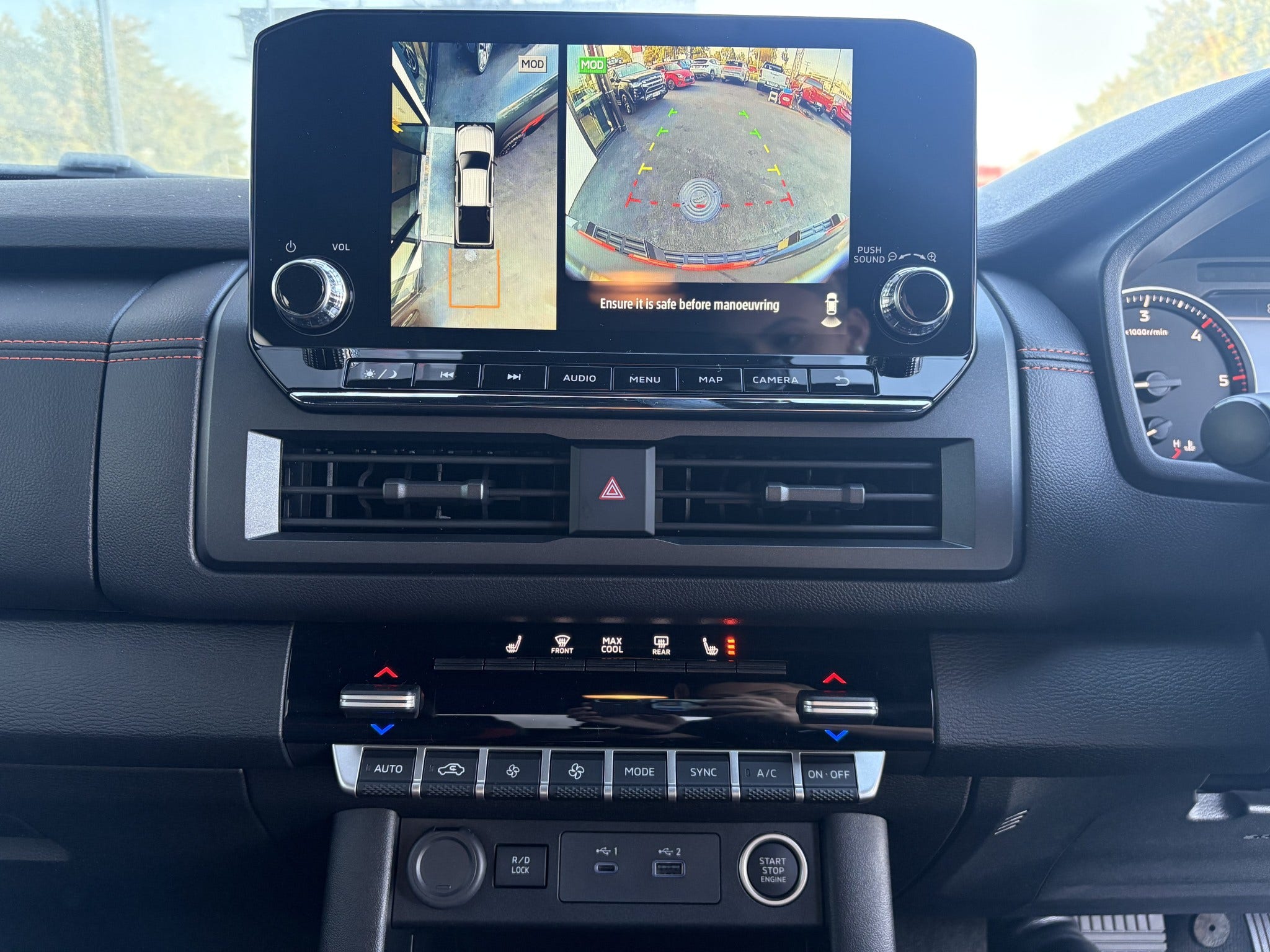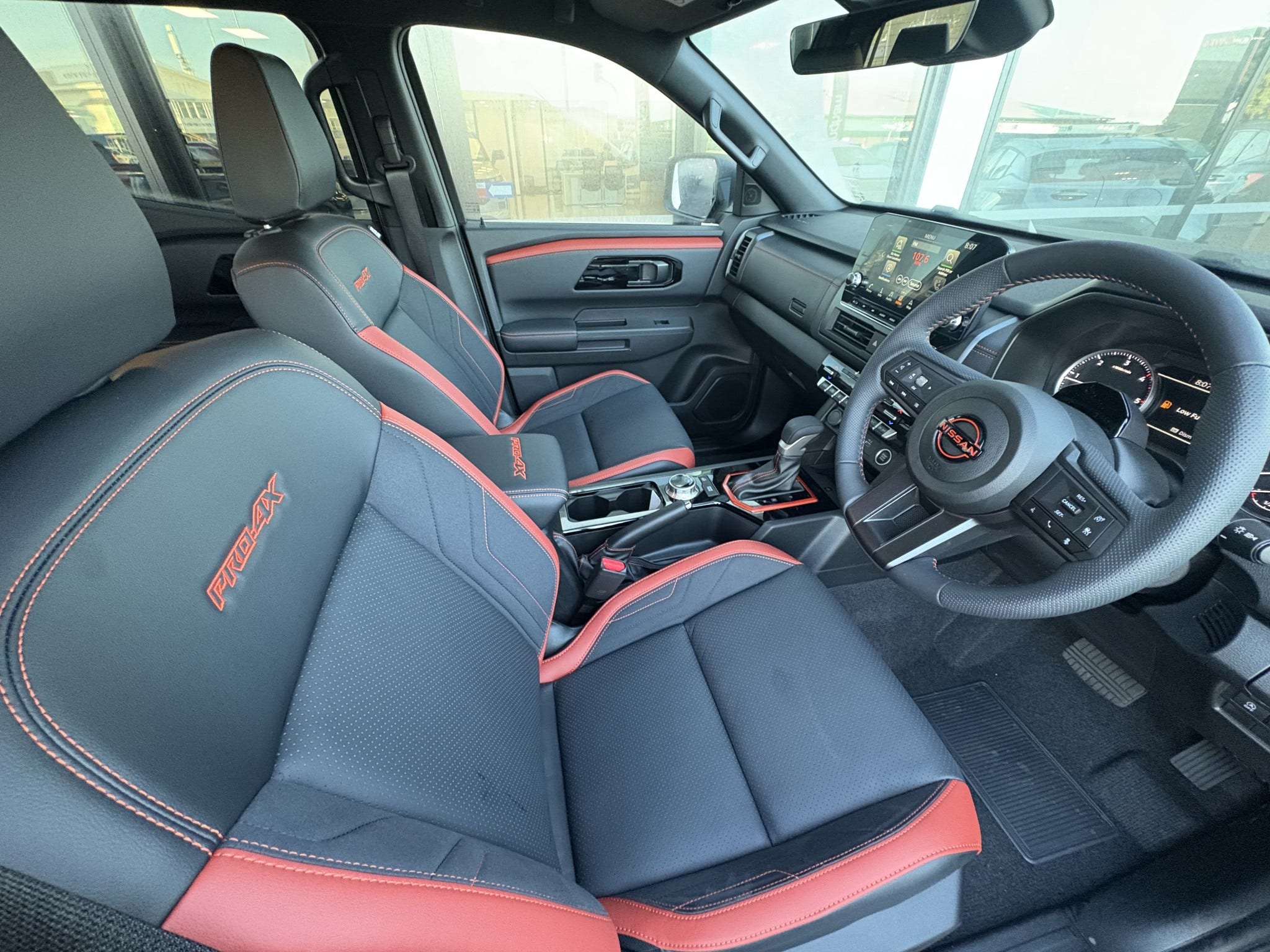 Lava Red Personality: You can’t miss the PRO-4X styling. The signature Lava Red accents, blacked-out 17-inch alloys, and all-terrain rubber give it that aggressive but sophisticated look.